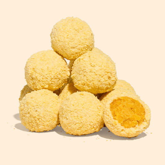 Remember those sunny afternoons and the scent of mom's lemon bars cooling in the kitchen? We’ve captured that exact tart magic, the perfect balance of bright lemon and buttery shortbread, and rolled it into a single, flavor-packed bite. With a lemon-butter cake center and coating of lemon shortbread sand these bite-sized truffles bring that classic bake-sale combo no one can resist, here for a limited-time only!