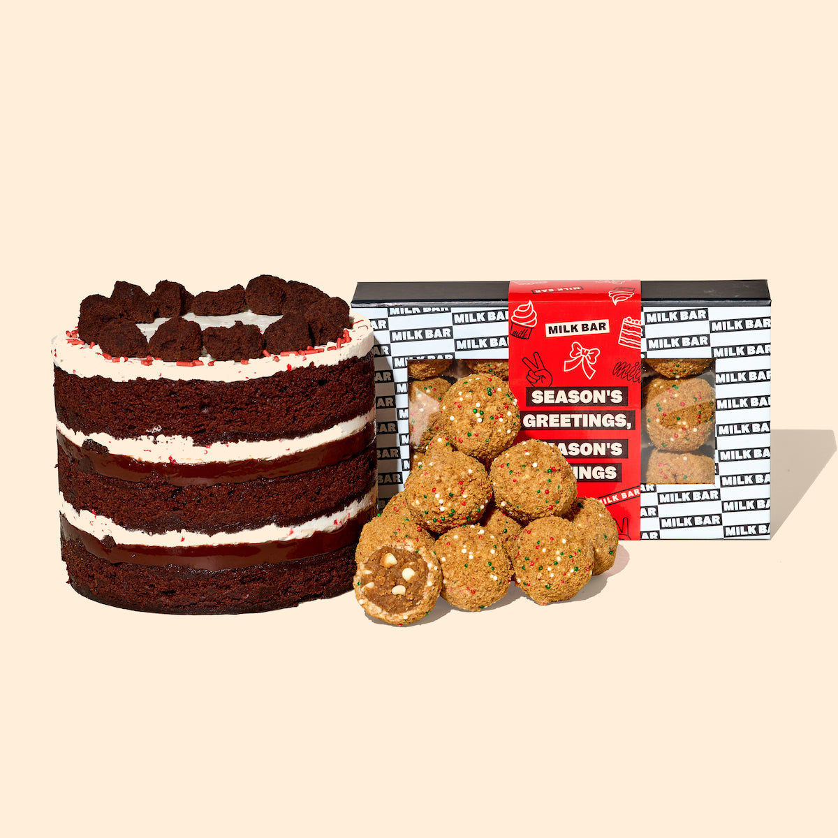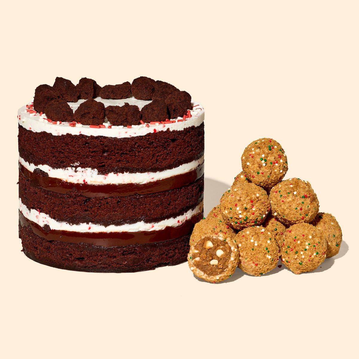 Ready to get festive? Whether you’re gifting to someone special or wowing your holiday guests, this combo of winter Peppermint Bark Cake and cozy Gingerbread Cookie Truffles is ready to make your season bright.