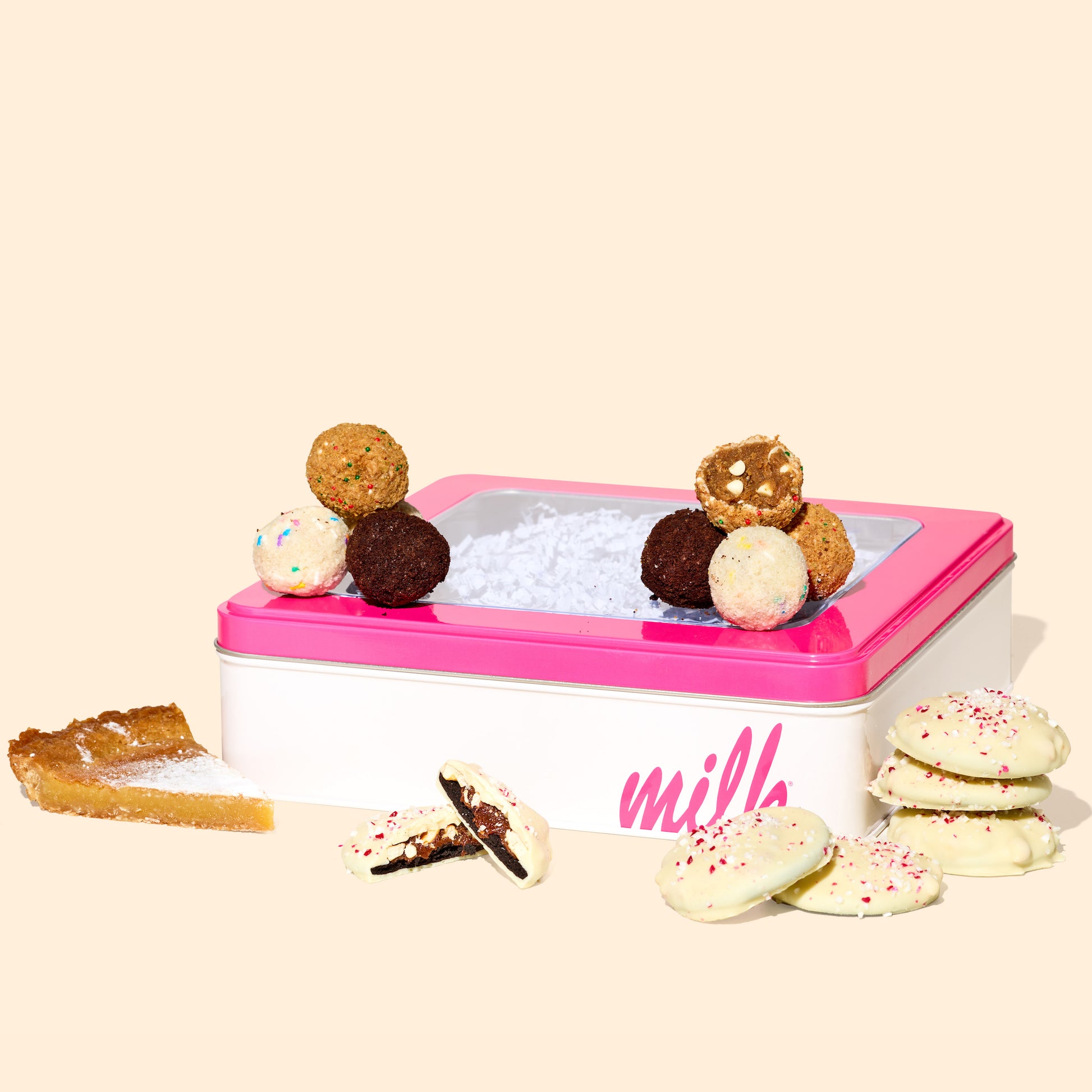 Get the gang together with this epic holiday spread. This sampler pack has something for everyone and includes our Peppermint Bark Snaps, a slice of Milk Bar Pie (because why not?), and three kinds of truffles— Gingerbread, B’day, and Chocolate chip. Ah, perfection.